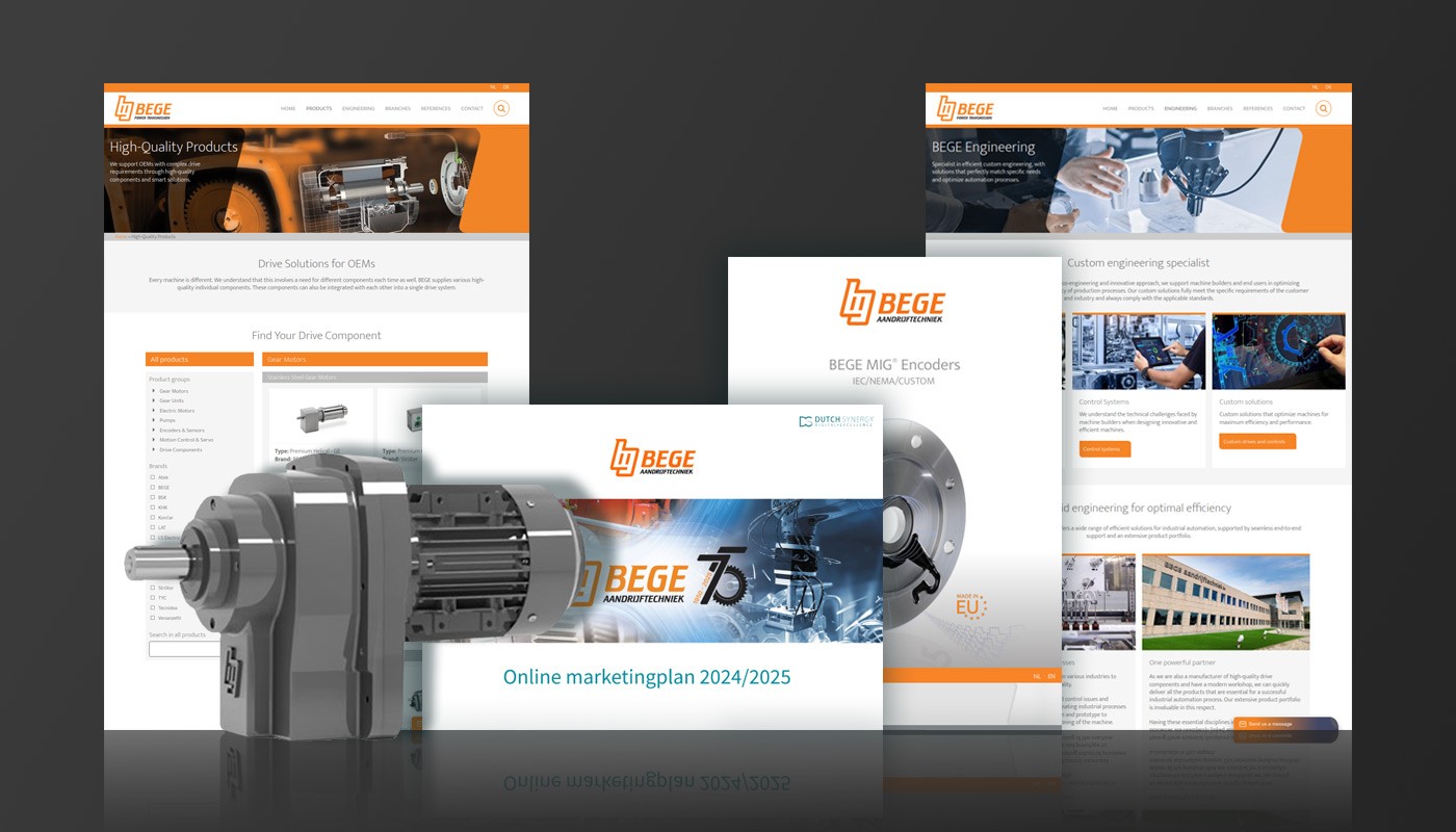 BEGE Aandrijftechniek, specialist in aandrijf- en besturingstechniek voor industriële toepassingen, zocht een marketingpartner om hun online aanwezigheid te professionaliseren en beter te laten aansluiten op hun technische expertise en groeiplannen.
