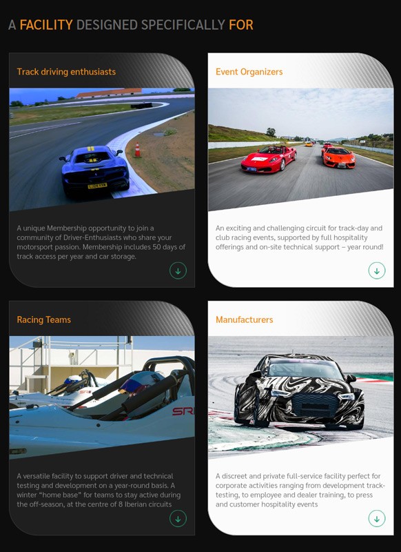 Schaalbare website voor een nieuwe motorsportlocatie, afgestemd op verschillende doelgroepen.