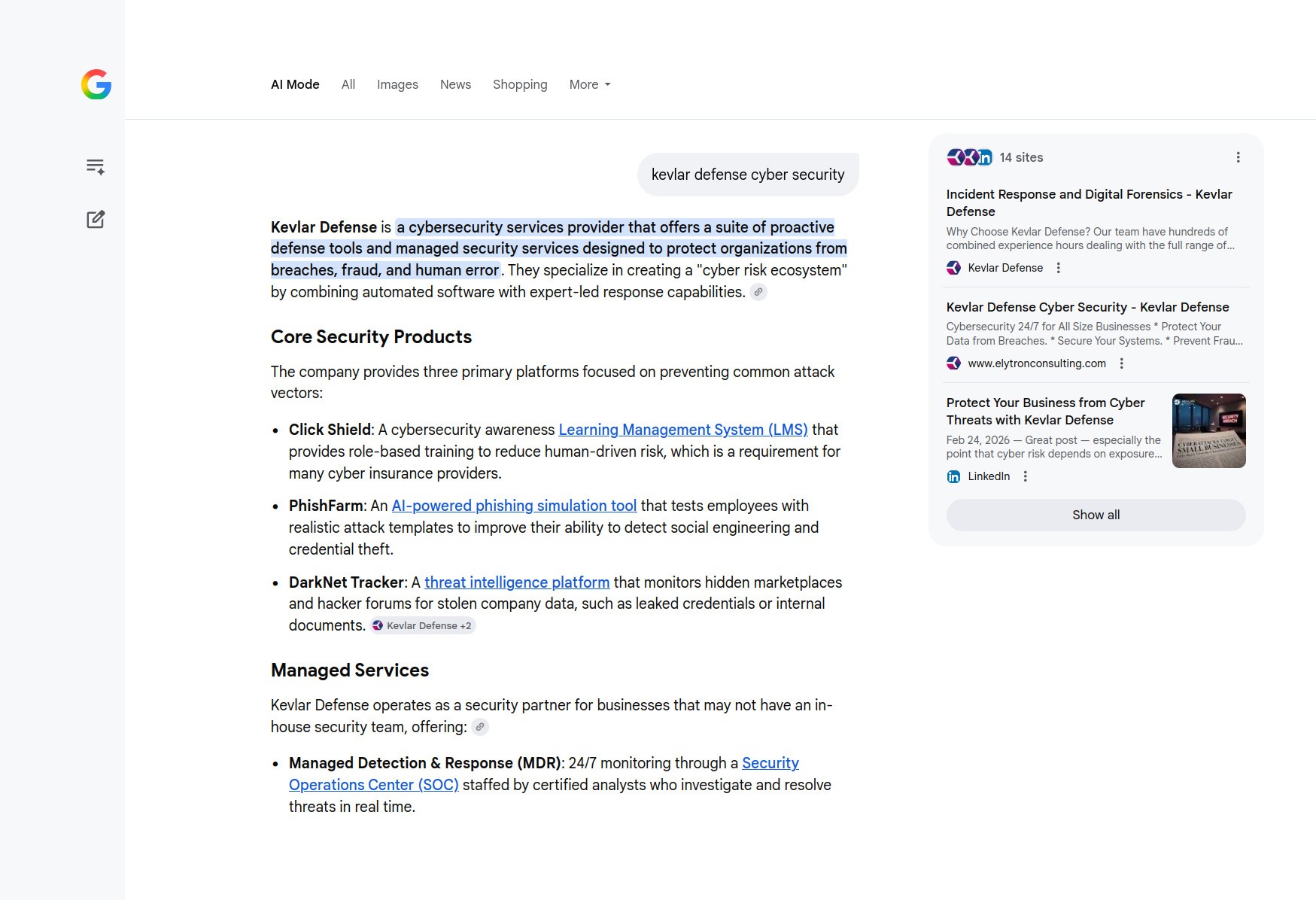 Kevlar Defense, een nieuw cybersecuritybedrijf voor de Europese markt, had snel een professionele website nodig om sales te ondersteunen. Wij realiseerden een schaalbare WordPress-website die structuur en geloofwaardigheid biedt. Zo kon Kevlar Defense direct de markt op met een solide digitale basis voor verdere groei.