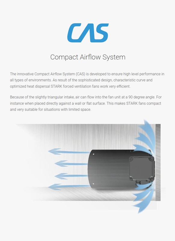 Om de onderscheidende technologie van STARK Forced Ventilation te benadrukken, introduceerden we het CAS Compact Airflow System als innovatieve invalshoek. Dit concept onderstreept de optimale koelprestaties van de ventilatiesystemen en vergroot de herkenbaarheid in de markt.