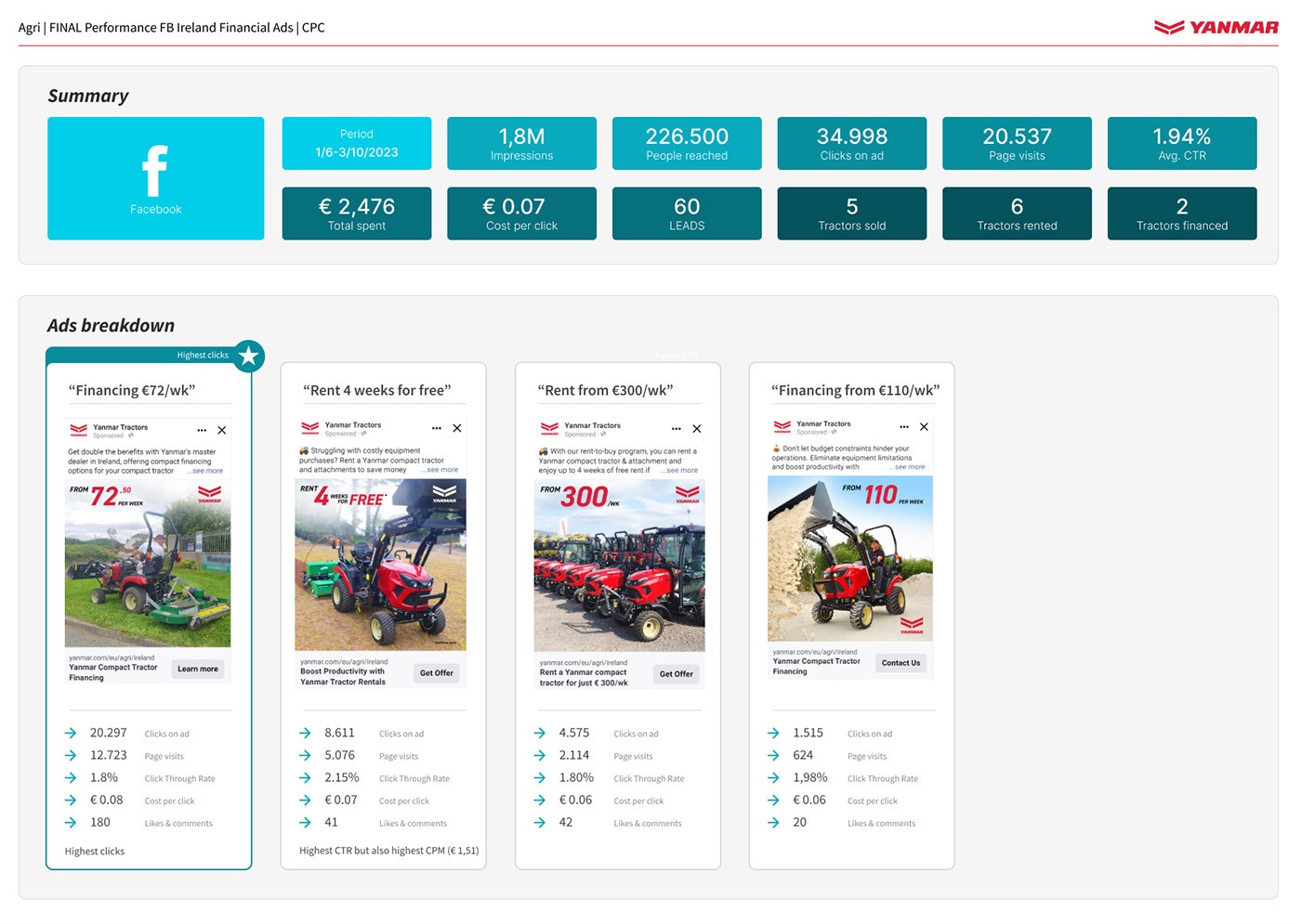 "Deze campagne heeft onze verkoop aanzienlijk ondersteund. De zichtbaarheid en leadgeneratie waren indrukwekkend. Onze distributeurs hebben meerdere tractors verkocht en de exposure in de markt is sterk verbeterd."