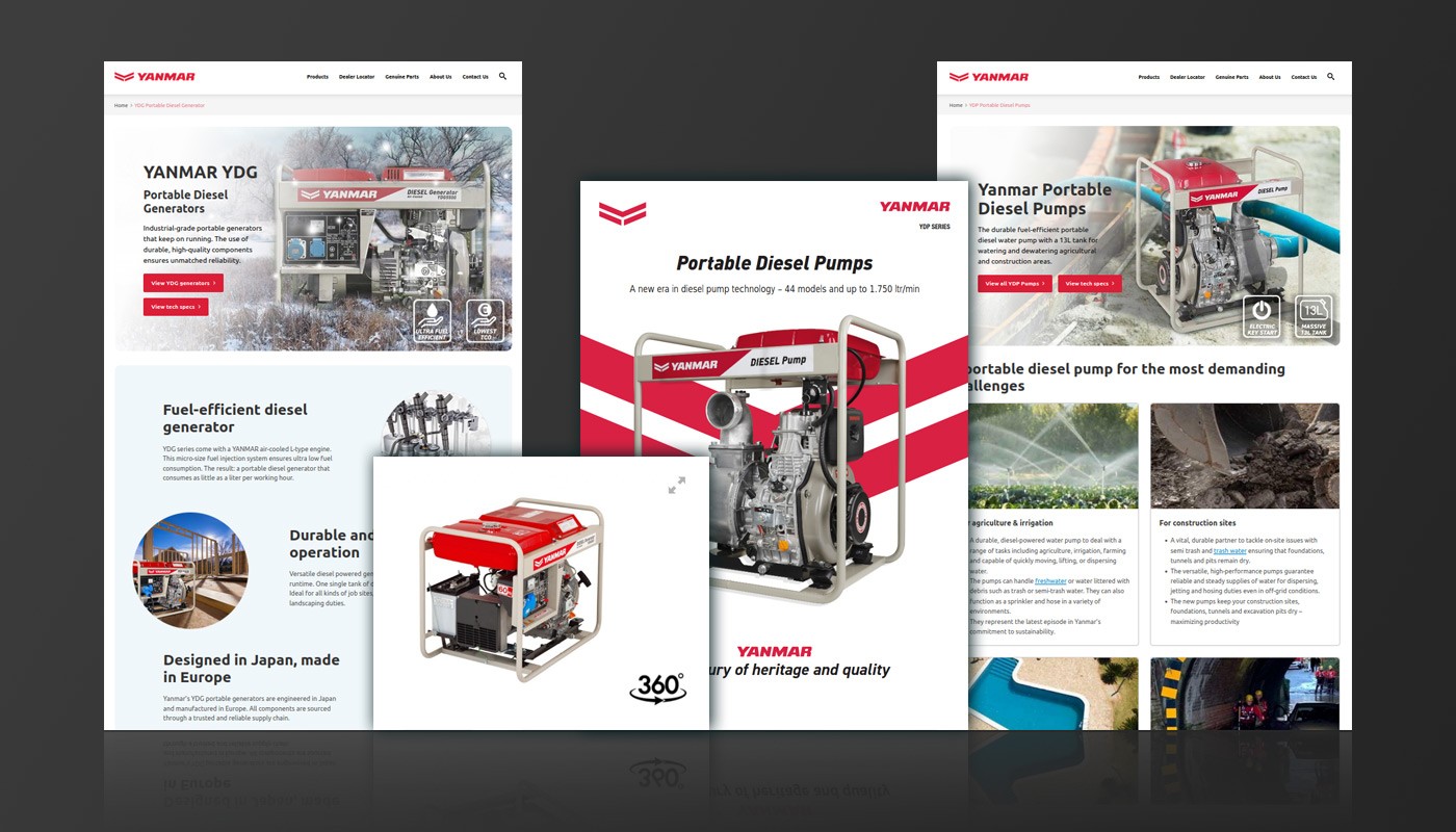 Yanmar Industrial Engines wilde specifieke power products beter zichtbaar maken binnen een competitieve markt en strikte corporate kaders. Voor hun industriële, portable diesel generatoren en waterpompen ontwikkelden we twee SEO-gedreven landing pages die productmarketing, gebruiksvriendelijkheid en conversie samenbrengen. Zo ontstond een schaalbaar fundament voor zichtbaarheid, interactie en verdere activatie zonder een volledige websitevernieuwing.